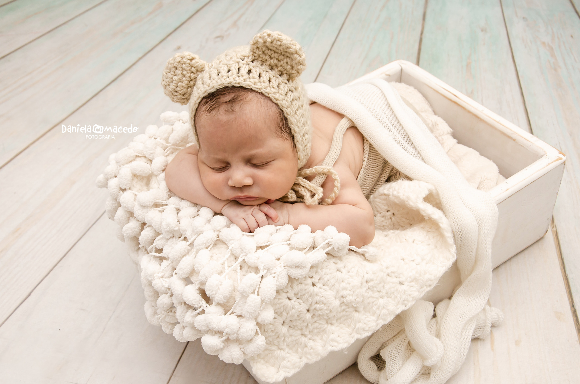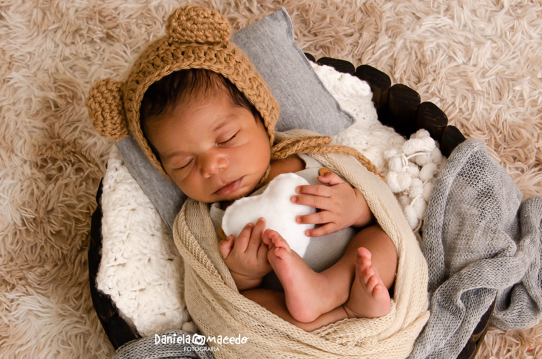 Para os cenários são utilizados cestos, mantas, tapetes, ursinhos e outros elementos para personalizar tornando o ensaio bonito e charmoso.